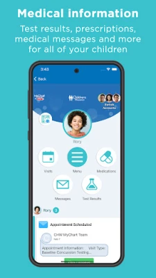 We’ve fully integrated MyChart into our new app, allowing parents to manage their child’s health in one place. You can also access medical records, view test results, manage prescriptions and send secure medical questions to your child’s care team.