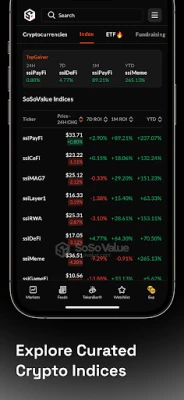 Presenting SoSoValue, the AI-powered app for smarter and simpler crypto investing. Whether you are tracking 10,000+ cryptocurrencies, analyzing Crypto ETFs, we equip all the tools you need to succeed. Stay up to date with live AI-driven news feeds, build your personalized watchlist, and connect with a vibrant crypto community in TokenBar. Trusted by millions of investors globally, SoSoValue revolutionizes crypto research with innovative AI tools, offering a tailored and comprehensive experience. It is your go to companion for navigating the fast-paced crypto market.